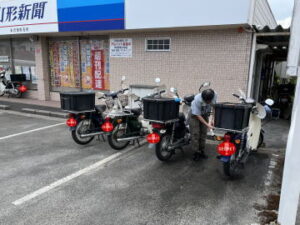 【新聞屋日記:第2769話】バイク洗車 山形新聞米沢東専売所からです。 朝刊終了後、(店舗営業時間まで)留守番スタッフがバイクの洗車をしていました。 いつもキレイなバイクで新聞をお届けしたいものですね。 パシャッ! Σp[【◎】]ω・´) つづく・・・。