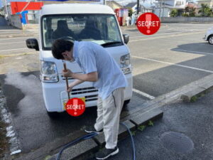 【新聞屋日記:第2773話】朝の洗車 山形新聞米沢東専売所からです。 お盆期間中は朝刊配達のみだったお店も、今日から通常営業です。 配達終了後に店番をしてくれてるスタッフが洗車をしていました。 どうしても細かい虫が付着しますもんねぇ。 パシャッ! Σp[【◎】]ω・´) つづく・・・。