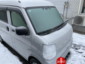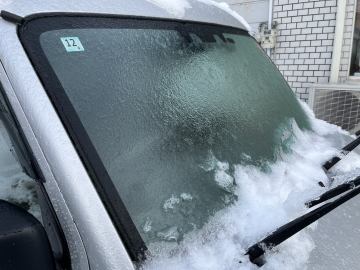 フロントガラスもガチガチに凍っています。