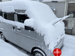 雪を下ろしてあった車がアッという間に積もりました。