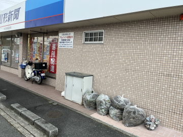 【新聞屋日記:第2807話】除草の後始末 山形新聞米沢東専売所からです。 店の周り(主に舗装されていない裏)の除草をしてくれたので、沢山袋があります。 お疲れさまでした。 パシャッ! Σp[【◎】]ω・´) つづく・・・。
