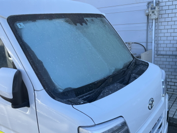 車のフロントガラスもガリガリです。